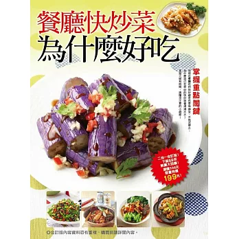 餐廳如此乾淨俐落的快炒料理,其實並不難,全書以餐廳常見快炒佳餚為主軸,分為肉類篇、海鮮篇、蔬食篇三大篇章,精選各類食材,每道食譜都有大廚的美味提示,你知道為什麼餐廳快炒即使用雞胸肉來料理,仍舊不會過澀嗎?你知道沙茶醬事先炒過再讓食材下鍋,會讓料理香氣更提升嗎?還有為什麼餐廳海鮮快炒總是這麼鮮甜又沒有腥味?無論是食材的選購、下鍋前的處理,或是料理時的畫龍點睛,以及火候和時間的精確掌控,都是餐廳快炒讓人大快朵頤的原因,搞懂這些平時沒有注意到的小細節,你也可以炒出一桌餐廳快炒等級的美味料理!